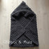 Mooie gehaakte antraciet grijze baby cape / omslagdoek. Gehaakt van Katia Alaska, 100% acryl. De baby cape is 85 x 85 cm groot en heeft een ruime cap waar je het hoofdje in kunt leggen. Heerlijke baby cape om je kindje in te wikkelen, in de box, kinderwagen, op je arm tijdens het voeden..